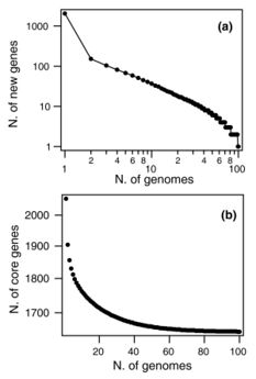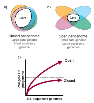 {{cite journal}}: CS1 maint: unflagged free DOI (link) - ^ Lapierre P, Gogarten JP (March 2009). "Estimating the size of the bacterial pan-genome". Trends in Genetics. 25 (3): 107–10. doi:10.1016/j.tig.2008.12.004. PMID 19168257.