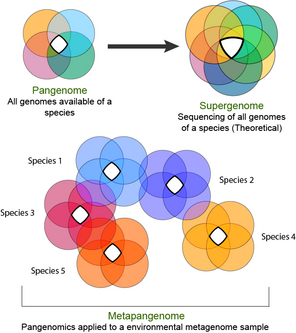 {{cite journal}}: CS1 maint: unflagged free DOI (link) - ^ Ma B, France M, Ravel J (2020). "Meta-Pangenome: At the Crossroad of Pangenomics and Metagenomics.". In Tettelin H, Medini D (eds.). The Pangenome: Diversity, Dynamics and Evolution of Genomes. Springer. pp. 205–218. doi:10.1007/978-3-030-38281-0_9. ISBN 978-3-030-38281-0. PMID 32633911. S2CID 219067583.