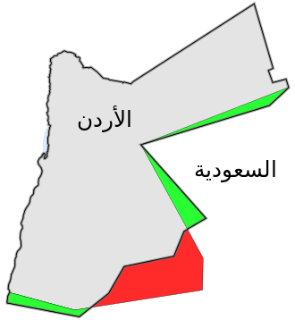 اُعتبِرت الحدود الجنوبيّة بين شرق الأردن والجزيرة العربيّة استراتيجيةً لشرق الأردن لتجنّب أن تكون دولةً غير ساحليّة، وذلك من خلال وجود خط ساحلي على البحر الأحمر عبر ميناء العقبة. كانت المنطقة الجنوبيّة المُمتدة بين معان والعقبة، منطقةً كبيرة نسبيًا مع عدد سكان متواضع بلغ آنذاك 10,000 نسمة فقط،[6] خاضعةً للمملكة العربية السعودية، ثم شرق الأردن المنتدبة) كما طالبت بها مملكة الحجاز. لقد وقعّت بريطانيا في عام 1925 مع ابن سعود معاهدةً أنشأت حدودًا بين الأردن والأراضي السعودية تتكون من ستة خطوط مستقيمة. منحت هذه الحدود بشكل حاسم شرق الأردن منفذاً قصيرًا على خليج العقبة. تم تأكيد الحدود فيما بعد بموجب معاهدة جدة لعام 1927.