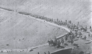 In December 1914, General Myshlaevsky ordered a withdrawal from Persia at the height of the Battle of Sarikamish.[3] Only one brigade of Russian troops under the command of the Armenian General Nazarbekoff and one battalion of Armenian volunteers scattered throughout Salmast and Urmia. Contact was limited to skirmishes on the border of northern Persia. The presence of Russian cavalry units kept them quiet.[3] Enver established [one division] troops from conscripted at Constantinople [December 25].[4] This unit was given under the command of Khalil Bey.[4] While Halil Bey's troops were preparing for the operation, a small group had already crossed the Persian frontier. After repulsing a Russian offensive toward Van, Van Gendarmerie Division [commanded by Major Ferid], a lightly equipped paramilitary formation, had chased the enemy into Persia.