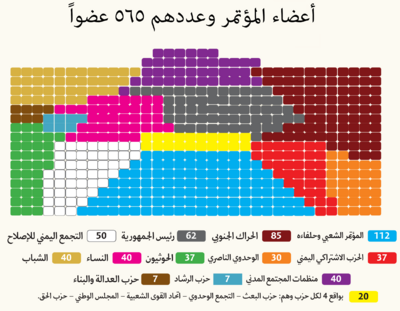 - ^ اليوم السعودية :الحوار اليمني ينطلق الاثنين لوضع دستور للبلاد بغياب معارضة الخارج و«الحراك» تاريخ الولوج 17 مارس 2013 Archived 2016-03-05 at the Wayback Machine