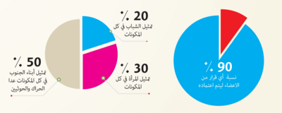 | 7 | استقلالية الهيئات ذات الخصوصية وقضايا اجتماعية وبيئية خاصة | 80 | 12 من كل مكون | معين عبد الملك [29] |
