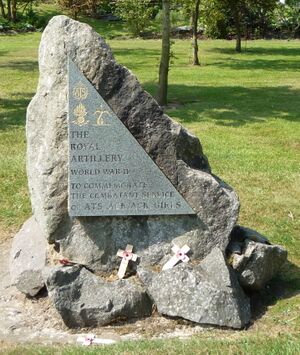 ATS 'Ack-Ack Girls' memorial at the National Memorial Arboretum. The badges depicted are those of the ATS, Royal Artillery and Anti-Aircraft Command.