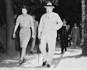 Mary Churchill, in her ATS uniform, accompanying her father Prime Minister Winston Churchill