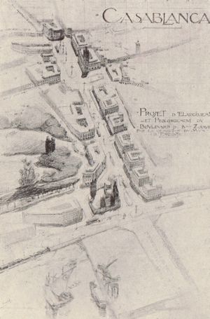 بعد فرض الحماية في مارس 1912 استمرت أعمال بناء الميناء بتوجيه وإشراف المقيم العام الجنرال ليوطي وهو ما شكل منعطفا مهما في تاريخ المدينة إذ أدى إنشاؤه إلى تطور الدار البيضاء اقتصاديا واجتماعيا ومجاليا لتصبح بعد ذلك أكبر مركز حضري بالمغرب[19]. كلف المهندس المدني هنري بروست بتخطيط الدار البيضاء وهي تتوسع كعاصمة استعمارية. بنيت مدينة أوروبية بجانب المدينة القديمة التي أسسها محمد الثالث بن عبد الله في القرن الثامن عشر وسميت ville nouvelle (مدينة جديدة)،[20][21] والساحة بينهما التي كانت مقام السوق الكبير أصبحت "ساحة فرنسا" وهي ساحة الأمم المتحدة الآن.