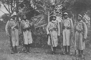 الرماة السنغاليون (فرنسية: Tirailleurs Sénégalais؛ إنگليزية: Senegalese Tirailleurs) كانوا corps of colonial infantry in the French Army. They were initially recruited from Senegal, French West Africa and subsequently throughout Western, Central and Eastern Africa: the main sub-Saharan regions of the French colonial empire.[1] The noun tirailleur, which translates variously as "skirmisher", "rifleman" or "sharpshooter", was a designation given by the French Army to indigenous infantry recruited in the various colonies and overseas possessions of the French Empire during the 19th and 20th centuries.