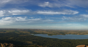 View of Lake Lawtonka and wind turbines from Mount Scott, Oklahoma