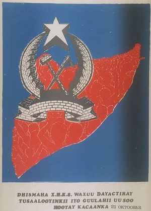 وفي 1374هـ، 12 أكتوبر 1954م، نَفَّذَت الإدارة الإيطالية بإشراف هيئة الوصاية الدولية (مصر والفلبين وكولومبيا) أول بند من بنود الاستقلال وتهيئة شعبه لتولي زمام أموره، وذلك حين احتفل بإنشاء العلم الصومالي، ثم بدأ مشروع صوملة الوظائف، وكانت كل الوظائف في شتى المرافق في أيدي الأجانب.