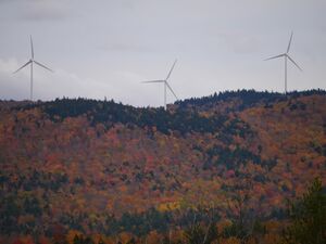 Since 1998, wind power has grown 23% per year on average in the US.[12] Prominent areas for wind turbines include Alta Wind in Kern County, California, Shepherds Flat in Gilliam County, Oregon and Roscoe Wind Farm in Nolan County, Texas.[57]