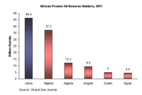 بإجمالي 46.5 بليون برميل برميل محقق (10 أضعاف مصر)، تمتلك ليبيا أكبر اقتصاد قائم على النفط في القارة الأفريقية تليها نيجريا والجزائر. على النقيض، فإجمالي احتياطيات النفط المحقق في الولايات المتحدة يقدر ب20.6 بليون برميل، ديسمبر 2008، حسب ادارة معلومات الطاقة.