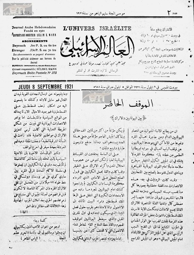 العالم الإسرائيلي (تأسست 1921) هي مجلة يهودية علمية أدبية إخبارية كانت تصدر مؤقتاً مرة في الأسبوع من بيروت. أسسها سليم إلياهو.