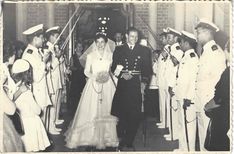 Saber arch at Military wedding in 1955, Argentinian Naval Officer in Dress Uniform and Bride