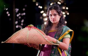 A girl with traditional gift of Gaye holud.