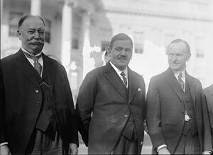 الرئيس الأمريكي السابق وليام تافت، الرئيس المكسيكي پلوتاركو إلياس كاليس، والرئيس الأمريكي كالڤن كولدج في البيت الأبيض.