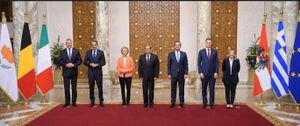 | ستة زعماء أوروبيين في القاهرة في 18 مارس 2024 من بينهم أورسولا فون در لاين. |