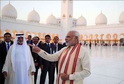 زيارة رئيس وزراء الهند، نارندرا مودي، إلى الإمارات لافتة للنظر من جوانب متعددة. حجم التبادل التجاري بينهما: 60 مليار دولار. حجم تحويلات الهنود من الإمارات هو 12.6 مليار دولار. محمد بن زايد وأربع أخوة له، استقبلوا مودي بالمطار. مودي زار مسجد زايد. الإمارات أهدت الهند قطعة أرض لبناء أول أشرم (معبد هندوسي) في إمارة أبو ظبي.