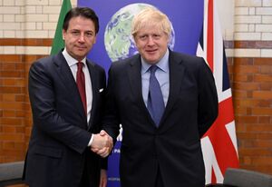 Prime ministers Boris Johnson (right) and Giuseppe Conte (left) in London at the launch of COP26 in February 2020, although it was postponed a year.