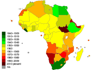 يبلغ عدد سكان القارة الأفريقية حوالي 1.216 بليون نسمة[6] تبلغ مساحتها 30.221.532 كم2. بدأ التصنيع بشكل هامشي في أوائل القرن العشرين في مستعمرات الدول الأوروپية، وهي الپرتغال وبلجيكا وإسبانيا وهولندا وألمانيا وفرنسا وإيطاليا والمملكة المتحدة. أدت الحروب المختلفة في القارة من أجل الاستقلال إلى التقسيم العنيف والمربك لأفريقيا. نظرًا لكون إفريقيا مصدرًا رئيسيًا للمواد الخام، فقد شهدت تنافس القوى الاستعمارية على النفوذ بين الدول المستقلة حديثًا، حيث أقامت القوى الاستعمارية السابقة علاقات خاصة مع مستعمراتها السابقة، في كثير من الأحيان من خلال تقديم المساعدة الاقتصادية والتحالفات للوصول إلى الموارد الهائلة في أراضيهم السابقه.