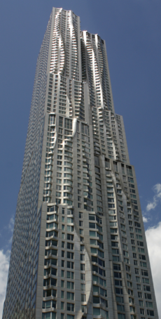 14. ^ Larsen, Keith (November 1, 2020). "Occupancy at The New York by Gehry falls by more than 20%". The Real Deal New York. Retrieved February 25, 2024. Frank Gehry designed the rippling stainless steel tower at 8 Spruce Street, which architecture critics marveled at for its unique "deconstructivism style."