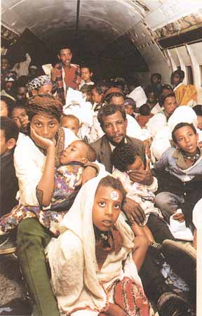 يهود فلاشا على متن طائرة تنقلهم إلى إسرائيل