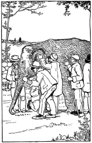 | "قيل أن ستة عميان تناهى إلى سمعهم أن فيلاً كبيراً سوف يؤتى به إلى بلدتهم بمناسبة الاحتفال السنوي، فذهبوا الستة إلى حاكم البلدة وطلبوا منه أن يسمح لهم بلمس الفيل لأول مرة في حياتهم، فهم دائماً ما يسمعون على الفيل ومدى ضخامته لكنهم لم يتصورا شكله قط. لم يمانع الحاكم إطلاقاً إلا أنه اشترط في سبيل ذلك أن يصف كل واحد منهم الفيل في جملة واحدة، وفي يوم الاحتفال وبحضور أهل البلدة أحاط الستة رجال بالفيل وبدأ كل واحد فيهم بلمسه، وبعد ما انتهوا من معاينة الفيل قام كل واحد بوصف الفيل أمام الحاكم وبحضور حشد كبير من والعامة، فجاء الوصف كالتالي: