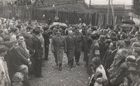 Hans Frank and Dr. Hofstetter of SS Galizien enter a Ukrainian Greek Catholic church prior to the installation of volunteers in Sanok, 1943.