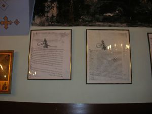 فرمانات السلطان محمد الثاني والسلطان بايزيد الثاني تمنح ملكية مبنى الكنيسة للسكان اليونانيين. في كنيسة مريم العذارء للمنغول، باسطنبول.
