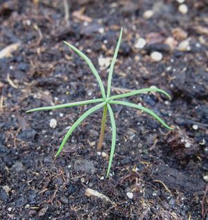 A seedling of Pinus halepensis with eight cotyledons