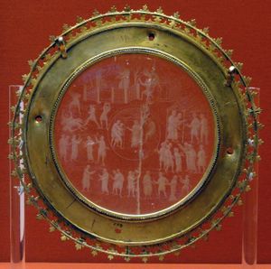 Lorsch Gospels. Ivory book cover. Late Antiquity Imperial scenes adapted to a Christian theme.