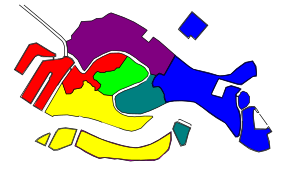 تفصل القناة أجزاء المركز التاريخي للبندقية إلى: