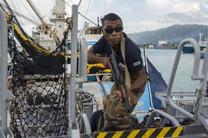 As of 2010, the military of Madagascar is composed of the 8,100 paramilitary of the National Gendarmerie and the 13,500 members of the Armed Forces. According to the International Institute of Strategic Studies' Military Balance 2010, the latter includes an Army of 12,500, a Navy of 500 and a 500-strong Air Force,[9] while the CIA Factbook describes the Armed Forces as consisting of the Intervention Force, Aeronaval Force (navy and air) and the Development Force. Military service is voluntary and limited to males aged 18 to 25; every citizen of either gender is required to have perform either military or civil service for a minimum of 18 months. However, because of a lack of up-to-date census data, this requirement is not currently enforced. The Gendarmerie recruits Malagasy citizens between the ages of 20 and 30 (or 35 if the recruit has prior military service). Military expenses constituted just over one percent of GDP.[10] Under Ravalomanana, military expenditure doubled from 54 million USD in 2006 to 103 million USD in 2008.[11]