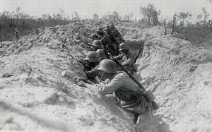 German soldiers in the battlefield in August 1914 on the Western Front shortly after the outbreak of war