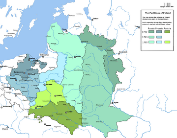 - from the Second Partition of Poland (1793): remaining part of the Minsk Voivodeship, the entire Kiev Voivodeship, Bracław Voivodeship and Vilnius Voivodeship, parts of Podole Voivodeship and eastern parts of the Wołyń Voivodeship and Brest Litovsk Voivodeship (about 250,000. km2)