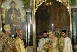 Conditions for the restoration of the Bulgarian Patriarchate and the election of a head of the Bulgarian Church were created after World War II.[3] In 1945 the schism was lifted and the Patriarch of Constantinople recognised the autocephaly of the Bulgarian Church. In 1950, the Holy Synod adopted a new Statute which paved the way for the restoration of the Patriarchate and in 1953, it elected the Metropolitan of Plovdiv, Cyril, Bulgarian Patriarch.[4] After the death of Patriarch Cyril in 1971, in his place was elected the Metropolitan of Lovech, Maxim, leading the church until his death in 2012. On 10 November 2012 Metropolitan Cyril of Varna and Veliki Preslav was chosen was interim leader to organize the election of the new Patriarch within four months.[5] At the church council convened to elect a new Patriarch 24 February 2013, the Metropolitan of Ruse, Neophyt was elected Patriarch of the Bulgarian Orthodox Church with 90 votes against 47 for Metropolitan Gabriel of Lovech.[6]