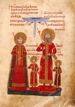 Tsar Ivan Alexander (1331-1371), an illustration from the Four Gospels of Tsar Ivan Alexander (the London Gospel), ca. 1356, the British Library