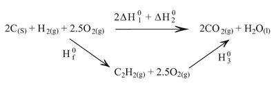 وكلها قابلة للقياس. فيوضع على التوازي احتراق مباشر لمولين من الفحم ومول من الهدروجين ثم تحول غير مباشر يتضمن تشكل مول من الأستيلين ثم احتراقه:الشكل (4),