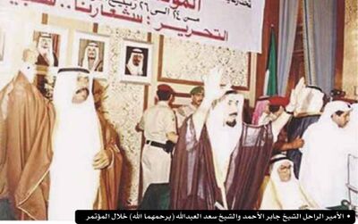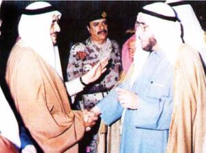 قام مجموعة من رجالات الكويت بعقد المؤتمر الشعبي الكويتي في جدة بالمملكة العربية السعودية بعيد الغزو العراقي الغاشم عام 1990م، وإعلان البيعة لأسرة آل الصباح، والتأكيد على أن ما قاله رئيس النظام العراقي هو كذب وافتراء، وأن الشعب الكويتي ملتف حول قيادته السياسية.