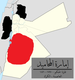 وصلوا جنوب الأردن تحديداً الكرك وسكنوا فيها، وكانوا بعدد وقوة كبيرة استطاعت إرضاخ أكبر قبائل المنطقة بعد محالفة عدد من العشائر تحت مسمى حلف عشائر الأمامية ففرضوا حكمهم عليهم وعلى بقية من في منطقة الكرك وحكموا المنطقة بأكلمها بالحديد والنار[16] والتسلط والانانية وقاموا بإجبار رعاياهم بالسير حفاة على الشوك واستأثروا بممتلكات محكوميهم[17]، وأطلق على مناطق حكمهم إسم إمارة المحاميد ووصل نفوذهم إلى مناطق أخرى خارج الكرك عاصمتهم وهي الطفلية وأجزاءاً من معان والعقبة والتي كانت تعرف سابقاً بإسم سنجق معان، وبقيت هذه المناطق تحت حكمهم أكثر من خمسين عاماً ، فذكر وسجل العديد من المشتشرقين والمؤرخين في كتبهم والدولة العثمانية في وثائقها وبعضاً من السجلات الشرعية[18] لمختلف مناطق الأردن أنهم قد ظلموا من كانوا تحت حكمهم، حيث كانوا قاسين عليهم، مما دفع بعضاً من القبائل المختلفة أن تتوحد ضدهم، فقاموا بإقامة إجتماع لقبائل وعشائر الكرك الجديدة أواخر القرن الثامن عشر بالتحالف مع بعض القوات العثمانية، أدي إلى تشتيت شمل الأمامية والقضاء عليه بما يسمى بحادثة برج الكرك، إضافة إلى مقتل بعض من مشايخ المحاميد بالسم، وسكن جزء منهم في وادي إبن حماد فأدى ذلك إلى مصاهرة عشيرة المعايطة ممت أبقى لهم بعض النفوذ بالوادي، ثم عادوا لمدينة الكرك بعدما تزوج شيخهم من عشيرة الحباشنة، وقام حفيد هذا الشيخ بقتل شخص من عشيرة منافسة، مما أدى إلى جلوتهم الى الطيبة في المزار الجنوبي، ومن ثم إلى الحسينية،أما البقية تشتت وانتشر في بلاد الشام بأكملها فانتهى فترة حمكهم في جنوب الأردن بالتزامن مع سقوط إيالة الجزائر.