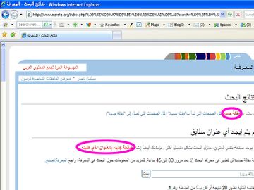 1- كتابة اسم المقال الجديد في مربع البحث الموجود في الصفحة الرئيسية للمعرفة.
