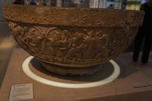 حوض رخامي من حماة، أمر بنحته المنصور محمد الثاني. ويوجد حالياً في متحف ڤيكتوريا وألبرت، لندن.