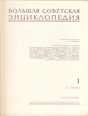 صدرت ثلاث طبعات للموسوعة. الطبعة الأولى كانت في 65 مجلدا (65.000 مقالة، بالإضافة إلى مجلد تكميلي عن الاتحاد السوفيتي) نشرت هذه الطبعة أثناء 1926-1947. وكان رئيس التحرير هو اوتو شميت (حتى 1941). الطبعة الثانية كانت في 50 مجلدا (100.000 مقالة، بالإضافة إلى مجلد تكميلي) نشرت بين 1950-1958، سرگيْ ڤاڤيلوڤ كان رئيس التحرير (حتى 1951)