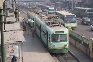أحد محطة لترام مصر الجديدة وأوتوبيسات هيئة النقل العام.