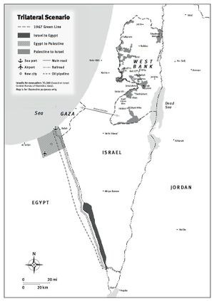 - ثالثا: في مقابل الأراضى التى ستتنازل عنها مصر للفلسطينيين، تحصل القاهرة على أراض من إسرائيل جنوب غربى النقب (منطقة وادى فيران). المنطقة التى ستنقلها إسرائيل لمصر يمكن أن تصل إلى ٧٢٠ كيلومتراً مربعاً (أو أقل قليلا)، لكنها تتضاءل في مقابل كل المميزات الاقتصادية والأمنية والدولية التى ستحصل عليها القاهرة لاحقا.