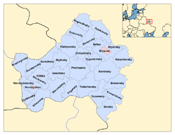 Bryansk Oblast is divided into 27 districts (raions) and 4 cities. Together they comprise 12 towns, 24 urban-type settlements, and 224 selsoviets.