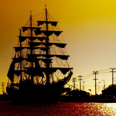 Colombian training ship ARC Gloria at sunset in Cartagena, Colombia