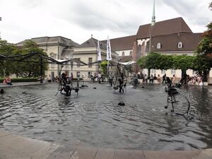 Basel is commonly considered to be the cultural capital of Switzerland[4][5] and the city is famous for its many museums, including the Kunstmuseum, which is the first collection of art accessible to the public in the world (1661) and the largest museum of art in Switzerland, the Fondation Beyeler (located in Riehen), the Museum Tinguely and the Museum of Contemporary Art, which is the first public museum of contemporary art in Europe.[6] Forty museums are spread throughout the city-canton, making Basel one of the largest cultural centres in relation to its size and population in Europe.[7]