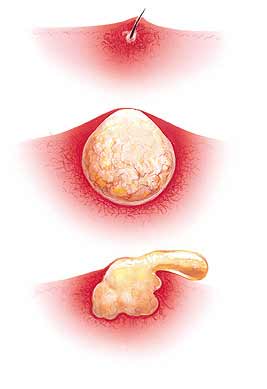 البَثْرة Boil عدوى مؤلمة للجلد والأنسجة التي تحت الجلد. ويبدأ ظهور البَثْرة بوجود نتوء صلب أحمر اللون. يلين مركز هذا النتوء خلال أيام قلائل ويمتلئ بالقيح والصديد. وتنشأ أغلب البثور في الوجه وتحت الإبط وفي الصدر والأرداف.