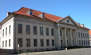 In the 18th century Brunswick was not only a political, but also a cultural centre. Influenced by the philosophy of the Enlightenment, dukes like Anthony Ulrich and Charles I became patrons of the arts and sciences. In 1745, Charles I founded the Collegium Carolinum, predecessor of the Brunswick University of Technology, and in 1753 he moved the ducal residence back to Brunswick. With this he attracted poets and thinkers such as Lessing, Leisewitz, and Jakob Mauvillon to his court and the city.[13] Emilia Galotti by Lessing and Goethe's Faust were performed for the first time in Brunswick.[14]