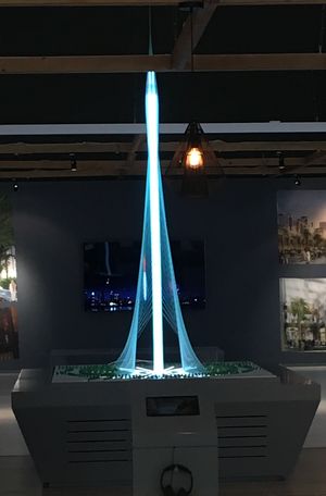 صرحت شركة أوركون الهندسية العاملة في المشروع أن أعلى برج جديد في دبي يحتوي على "منارة" تضاء ليلاً. في الجزء العلوي، سيكون هناك برعم بيضاوي الشكل، يضم عشرة طوابق للرصد، بما في ذلك غرفة پيناكل، والتي ستوفر إطلالات بزاوية 360 درجة على المدينة، وفقاً لبيان صادر عن شركة أوركون الهندسية، التي تعمل في المشروع مع المهندس المعماري الإسپاني سانتياگو كالاتراڤا.