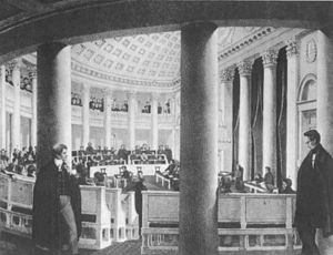The Halbmondsaal at Stuttgart Ständekammer, venue of the first rump parliament meeting. Lithograph by Gustav Renz.